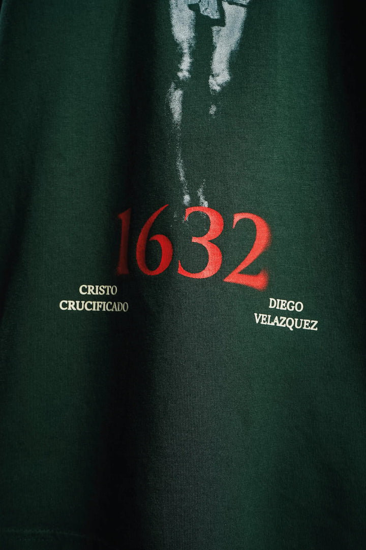 La Camiseta Cristo Crucificado Verde Pino representa la dualidad entre lo sagrado y lo urbano, combinando arte simbólico y diseño contemporáneo. Su tejido 100% algodón de 250 g aporta una textura gruesa, resistente y de alta calidad, mientras que el estampado en policromÃa y alta densidad resalta la potencia visual del gráfico sobre la base verde pino. Los detalles en rubber negro estrellado y el banderÃn lateral complementan una prenda diseñada para quienes buscan expresión, estilo y profundidad estética.