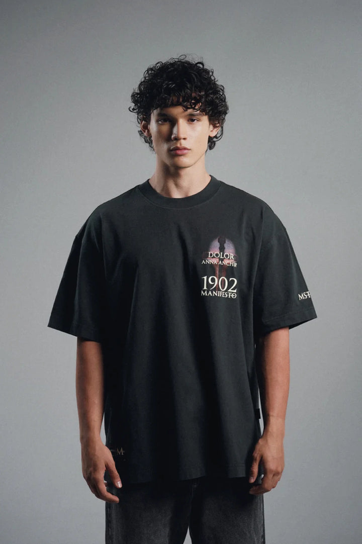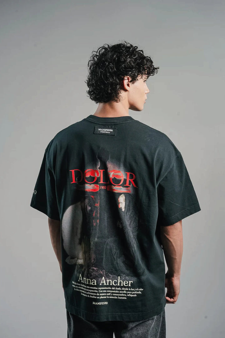 La Camiseta Dolor Cenizo transmite fuerza y sobriedad a través de una estética oscura y minimalista. Confeccionada en algodón 100% de 250 g, ofrece una textura gruesa, resistente y de tacto suave. Su arte en policromÃa y alta densidad proyecta profundidad y carácter sobre la base ceniza, mientras que los detalles en rubber negro estrellado y el banderÃn lateral añaden contraste y definición. Una pieza que fusiona diseño, presencia y equilibrio visual.