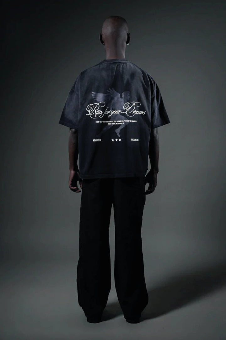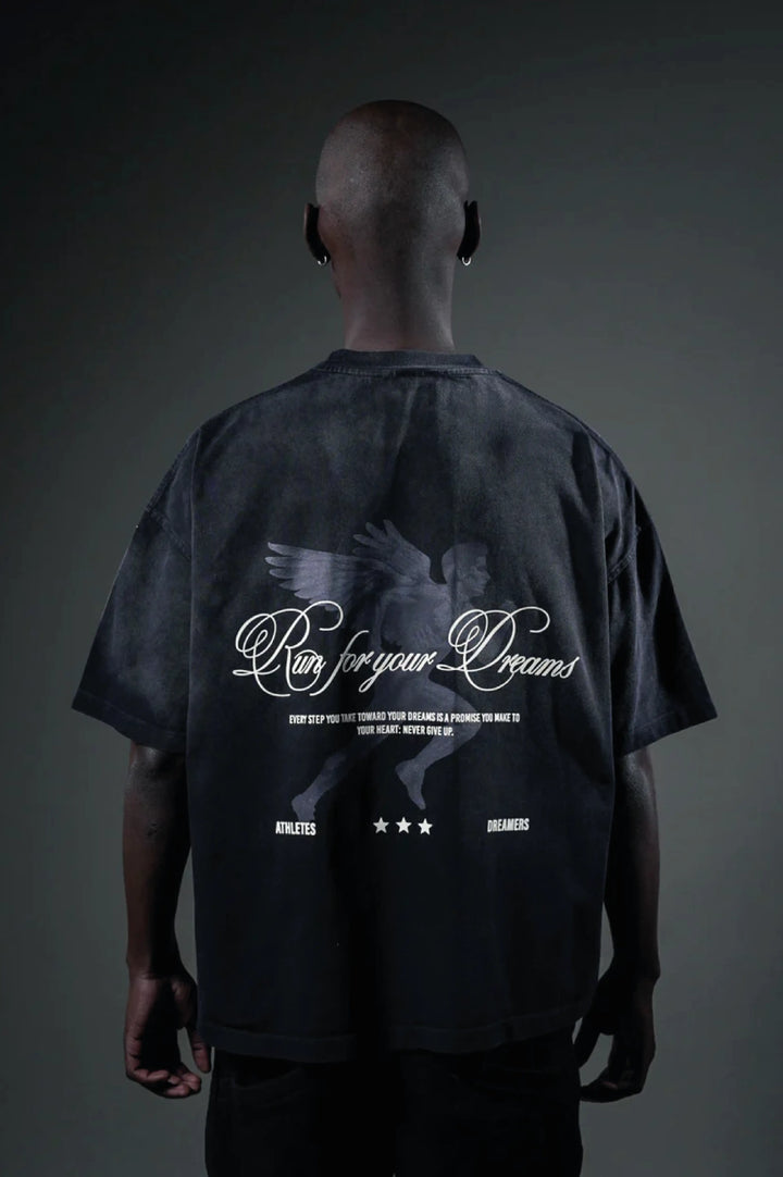 La Camiseta Grey Gradient Run combina sobriedad y carácter gráfico en una silueta moderna. Su boxy fit ofrece una caída estructurada y contemporánea, mientras que el algodón 100% de 350 gr asegura una textura gruesa, resistente y de alta calidad. Los estampados en alta densidad aportan definición y fuerza visual sobre la base gris, y el cuello en rib añade confort y ajuste perfecto.